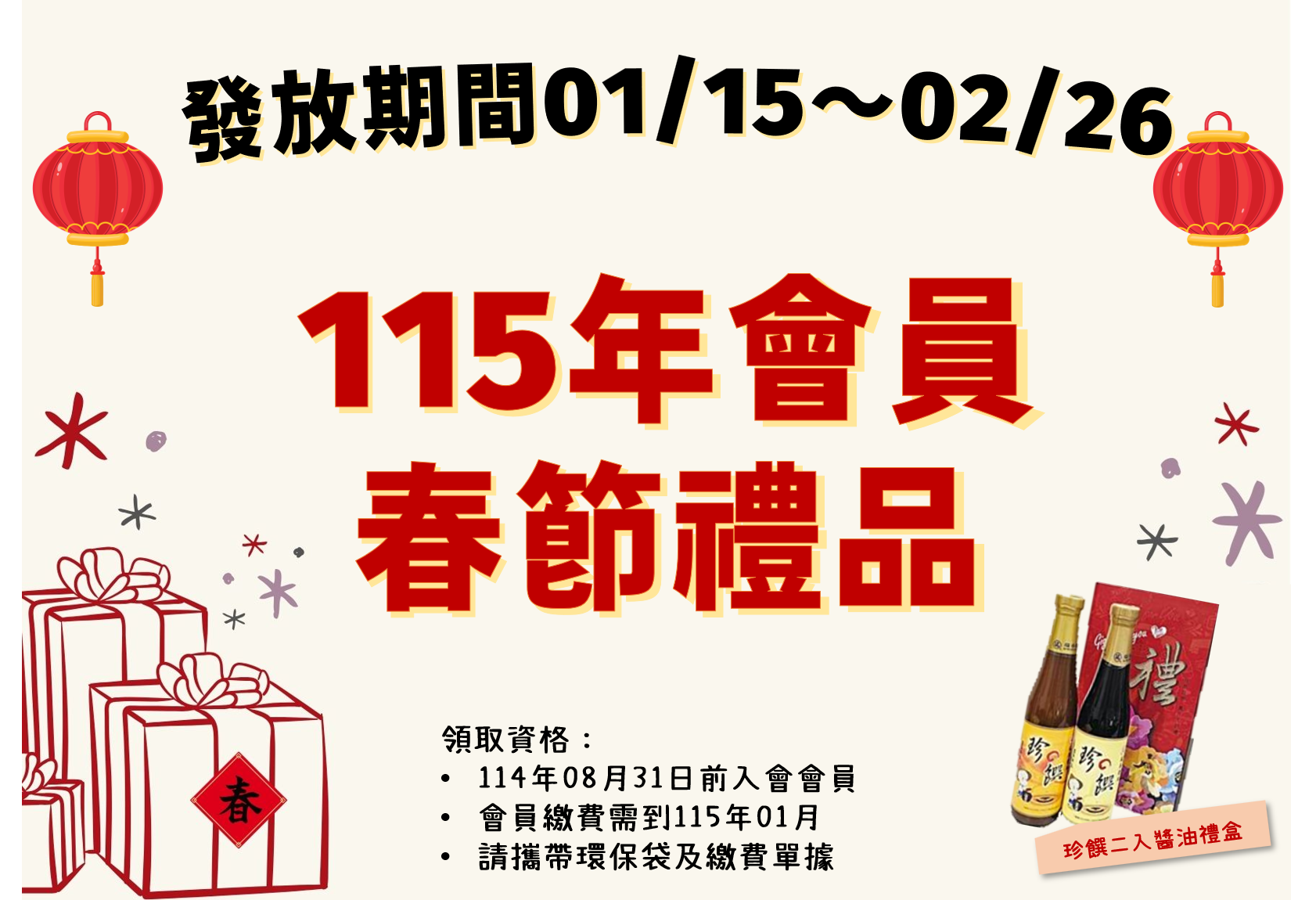 115年春節禮品🎁01/15(四)開放領取❗️ 本次禮品 【瑞春珍饌二入醬油禮盒】 #請繳完... -